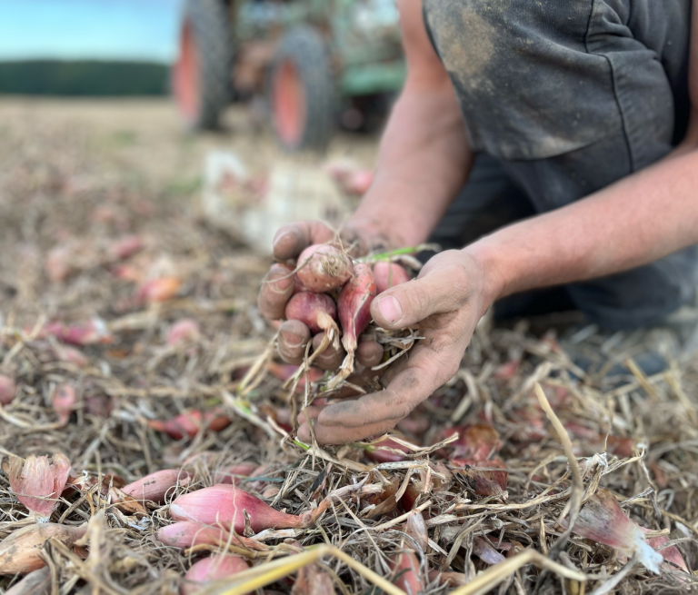 Dieses Jahr haben wir Rote Zwiebeln, Gelbe Zwiebeln und auch Schalotten im Angebot.